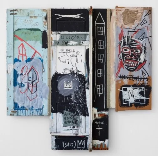 Jean-Michel Basquiat, Portrait of the Artist as a Young Derelict, 1982, oil, oil stick, and acrylic on wood and metal, 80 x 82 inches